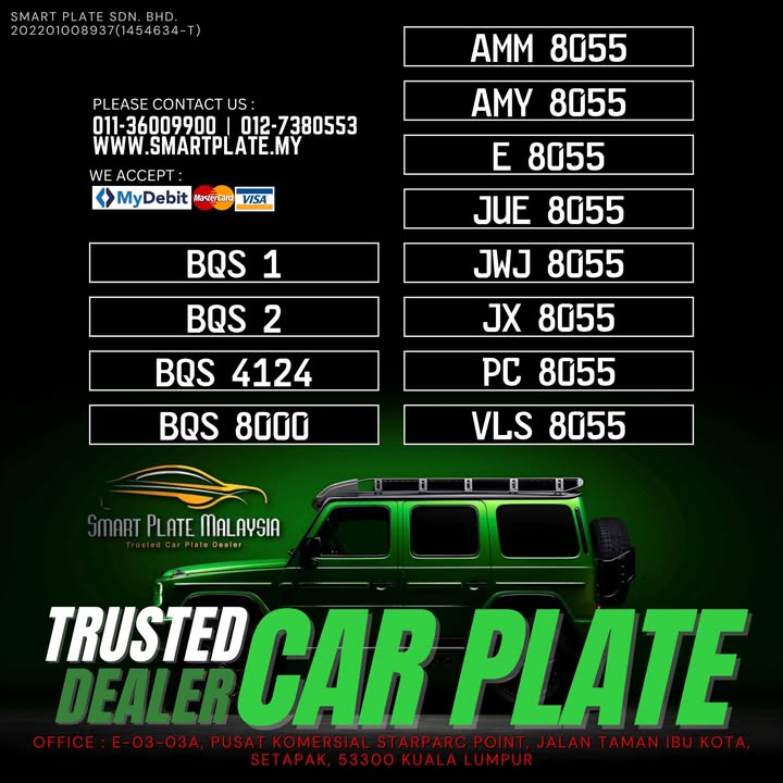 Have you ever heard of our website www.smartplate.my ? It is a great resource with over 180,000 number plates to choose from. If you search for the number plate you want, you\'ll be able to see the ...